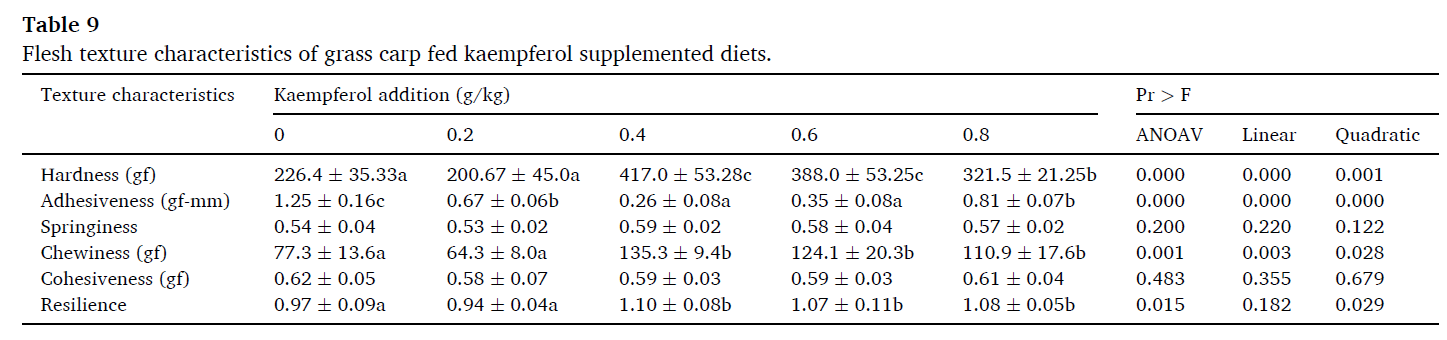 Technical articles近日,上海腾拔Universal TA研究型质构仪助力上海海洋大学水产科学guojiaji实验教学示范中心研究人员在农林科学领域国际期刊《Animal Feed Science and Technology》(QI IF=3.313)发表了题为"Dietary supplementation of kaempferol improved the growth, lipid metabolism and flesh quality of juvenile grass carp (Ctenopharyngodon idellus) based on metabolomics"的研究论文。