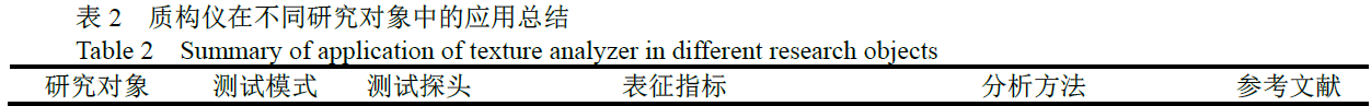 质构仪又称物性分析仪,是一种能够准确描述样品受力后力、位移、时间3 个参数变化过程的精密仪器,能以数据客观反映样品的各种物理特性参数,其结果具有较高的准确性、灵敏性与客观性。质构仪早应用于食品行业,测定的物性参数能较好反映食品质量优劣,已被广泛应用于客观评价食品品质;此外,质构仪在农业工程、化工材料、生物医学等领域也得到了成功应用,如测定小麦茎杆的弯曲性能、灯丝的力学性能以及骨的生物力学性能等。