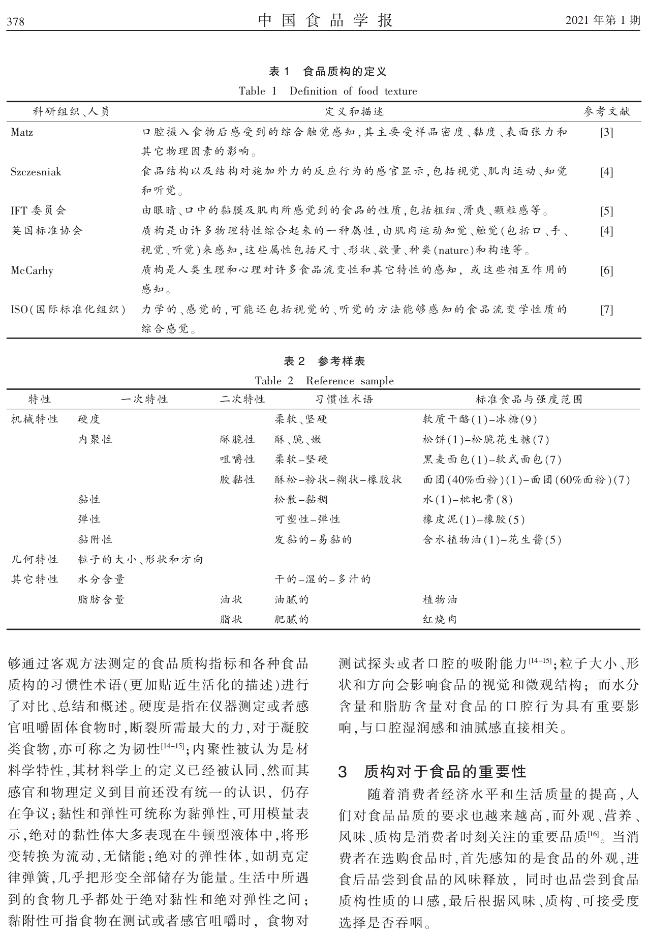 2021年1月,国内食品领域期刊《中国食品学报》刊登了浙江工商大学食品与生物工程学院陈伟、陈建设*题为“食品的质构及其性质”的论文。
