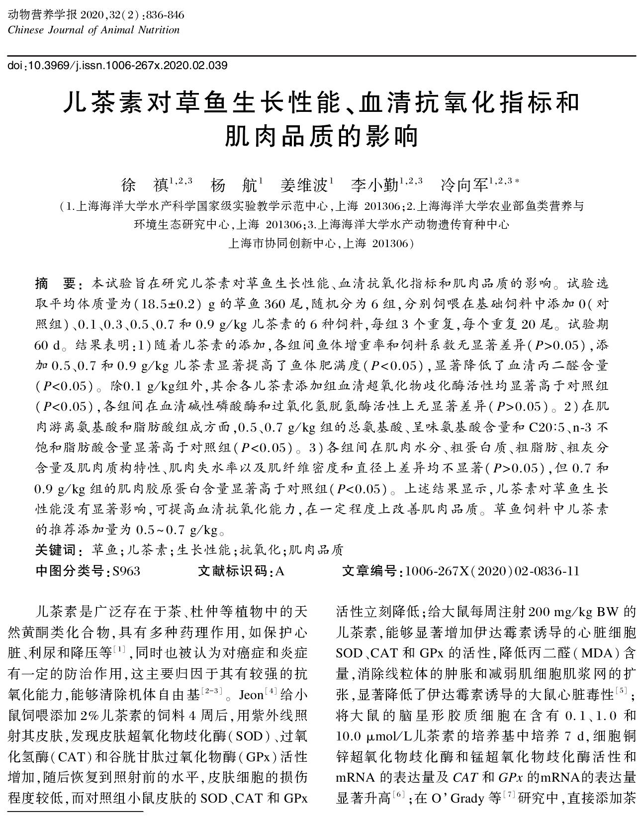 全文下载链接儿茶素对草鱼生长性能、血清抗氧化指标和肌肉品质的影响