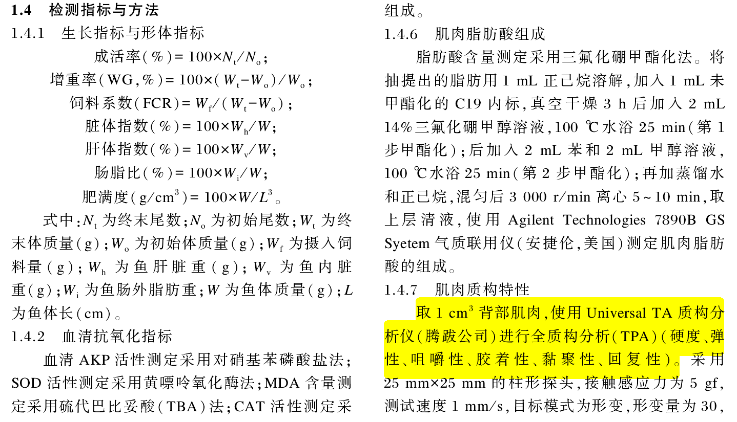 质构仪相关论文:儿茶素对草鱼生长性能、血清抗氧化指标和 肌肉品质的影响
