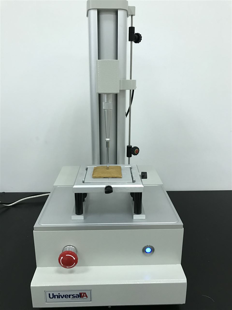 结果测定:当达到5g的触发力后,探头继续穿刺样品直至所需要的力量值,如200g。zui大峰值位移代表了样品的柔软度。